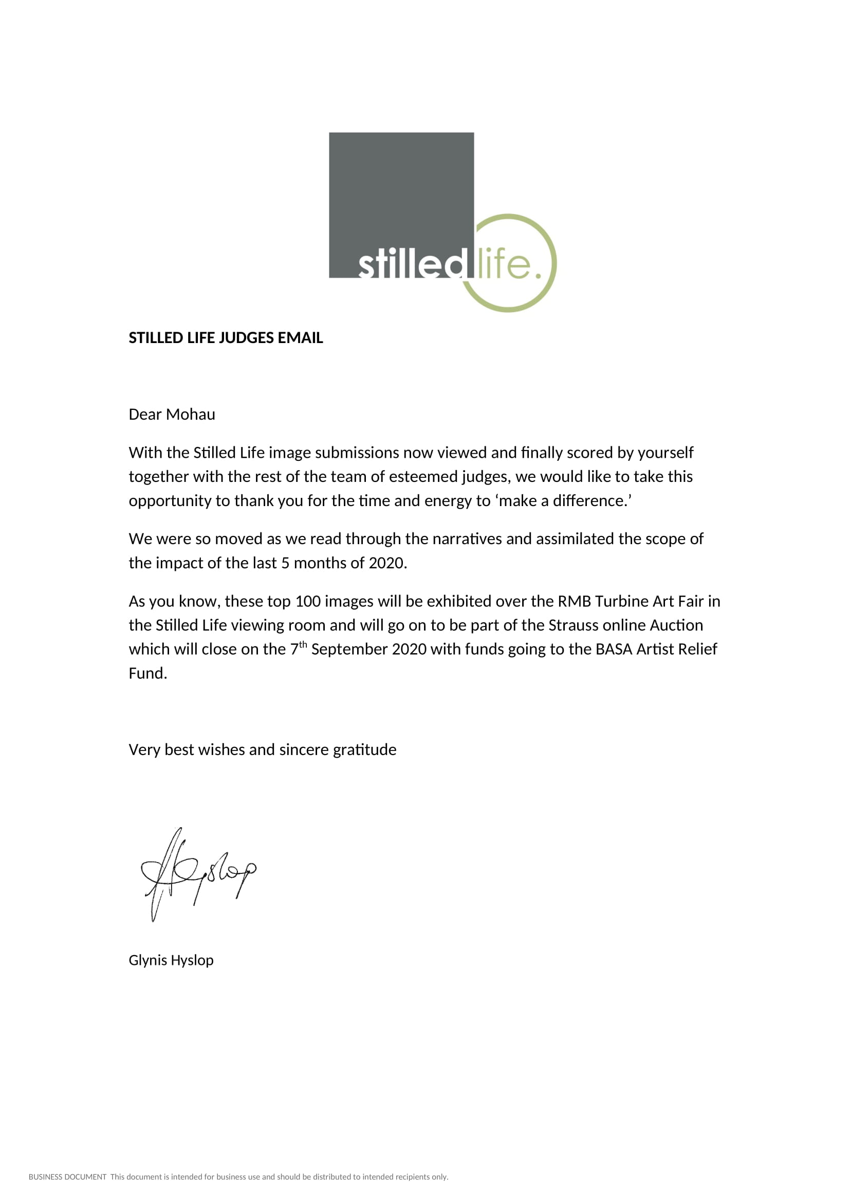 In August 2020, I was named as one of the esteemed judges for the RMB Turbine Art Fair’s Stilled Life photography exhibition on the subject of COVID-19 and its impact on everyday life.